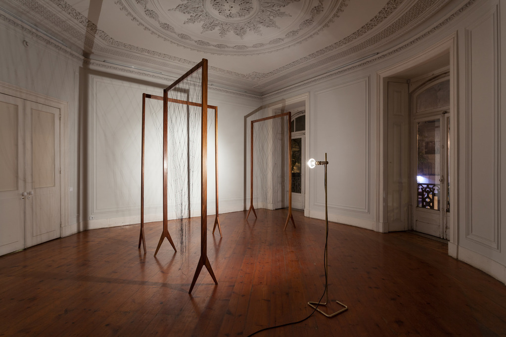 Leonor Antunes, A linha é tão fina que o olho apesar de armado com uma lupa, imagina-a ao invés de vê-la II, 2013, madeira de tola, fio de nylon. Foto: Bruno Lopes Foto: Bruno Lopes. Cortesia da artista e Kunsthalle Lissabon.