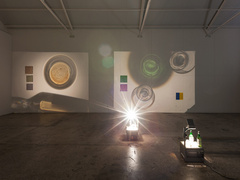 Jérémy Pajeanc, Ivre, em colaboração com João Marçal. 3 projecções de luz, 3 pinturas a óleo sobre MDF,
