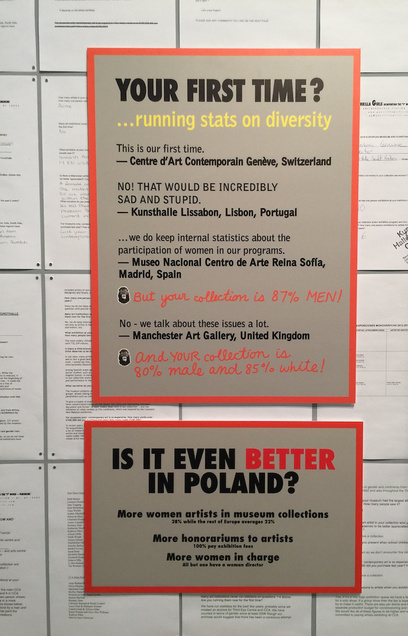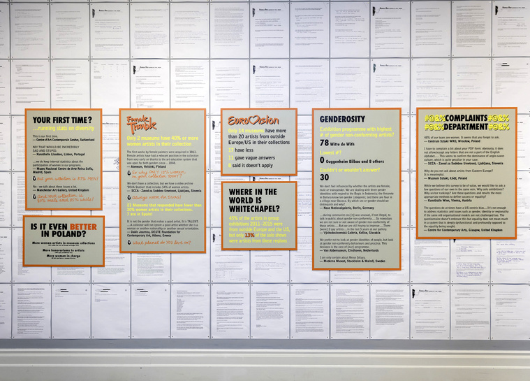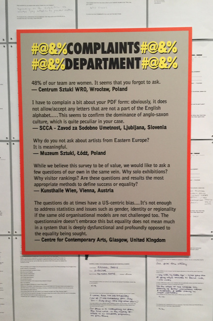 Guerrilla Girls: Sim, recebemos algumas críticas por não termos incluído a Europa de Leste como uma categoria de diversidade e incluímos esses comentários na exposição. Foi pouco perspicaz assumirmos que apenas pelo facto de termos contactado tantas instituições no Leste europeu, isso por si tinha resolvido o assunto.