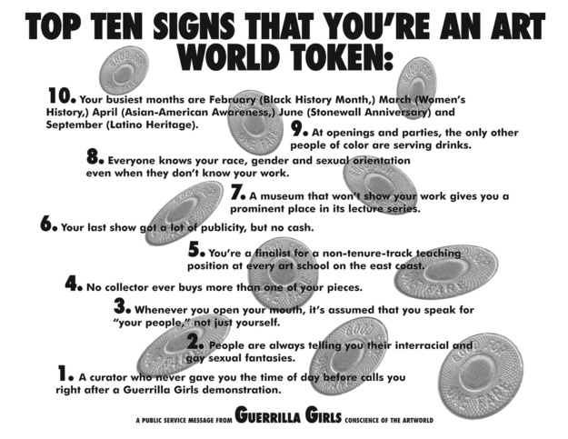 [2] Tokenismo, do inglês tokenism, é a prática de proceder apenas a esforços simbólicos ou superficiais numa determinada área de atividade, nomeadamente recrutando um pequeno número de pessoas de grupos sub-representados de modo a sugerir uma aparente igualdade sexual ou racial dentro de um meio.
